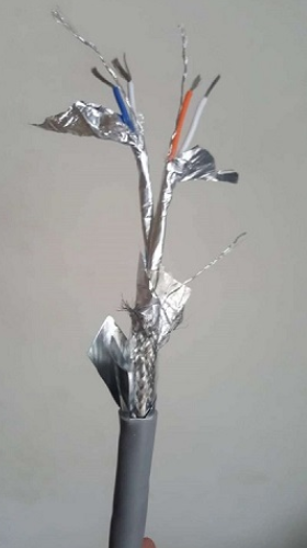 2線對4芯(2x 2x24AWG)(2*2*0.2)(2*2*0.5)(2*2*0.75)(2*2*1.0)(2*2*1.5)多股絞合鍍錫銅絲,PE絕緣護套;為適用于復雜的工業(yè)噪聲環(huán)境,特采用鋁箔/聚酯復合帶100%屏蔽率+鍍錫銅編制網90%屏蔽率共雙重屏蔽,并附有獨立TC接地導體,工業(yè)灰色PVC外護套,特性阻抗120歐姆 。