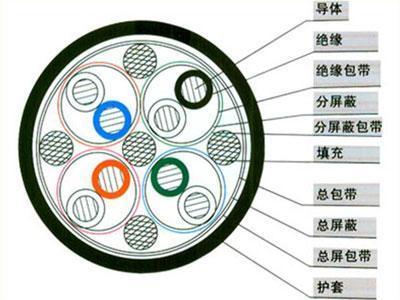 銅導體交聯(lián)聚乙烯J緣鋁塑復合薄膜分屏蔽及總屏蔽聚氯乙烯護套計算機電纜